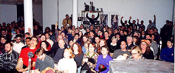 Over five days, 115 films screened, with more then a third represented in person by their respective filmmakers, including Nicholas Miller (AMBITION, DISTORTION), Sleaze Steele (KANT'S GNAWSER), James W. Harris (FLESH ORGY OF THE ZOMBIE TOTEM), Monroe Bardot (THE MUMMY RETURNS AGAIN), Catherine Pancake (THE SUIT), Mark Colgrove (FRATMAN), Justin Levy (ANARCHY CARPET), Darin Zimmerman (PROMO 53-104b), Jason Woliner (PROMO 53-104b, MONKEY WALKEN, I HAVE SEEN THE FACE OF HEAVY METAL AND HIS NAME IS MIKE PORTNOY, SIMPLE RULES FOR HAPPY MOVIE FUN, STUBBORN BRITISH DRIVER IN AMERICA), james dean conklin (MONKEY WALKEN, BINGO'S DREAM, MONEY, SIMPLE RULES FOR HAPPY MOVIE FUN, TWELVE ANGRY ROBOTS), Jakob Lodwick (JACOB'S BREAKUP), Rosario Garcia-Montero (LOCKED), Robert Flanagan (LOVE & DEATH AT THE ROMP), John Krokidas (SLO-MO), Pat Bishow (HAUNTED HAPPENIN'!), Andy Schwartz & Marissa Ronca (DOG'S NEXT FRIEND), Juliette Goodwin (URBANKITCHEN), John Standiford (PLAIN ENGLISH), Jay Barba & Brian Farrelly (RETURN TO PURGATORY, THE YEAR CHRISTMAS ALMOST WASN'T), Jeffrey J. Johnson (ZENO'S GOT AN AXE AND I THINK HE'S CRAZY), Don Diego Ramirez (IN THE STREETS), Spencer Parsons (RESOLUTION), Eric Dyer (KINETIC SANDWICH, BUDY THE CARROT), Mario Escobar (SUBVESION, WHAT TO BELIEVE), Steve Cuden (LUCKY), Rachel Max (DEAD KITTY), Keenan Williams (DINO-SKELETON MONKEY CHASE), Tom Shillue (FOURWARNED: A BARBERSHOP ODYSSEY), Tim Martin (ROCK-N-ROLL), Partick Martz & Frank Siaca (NIGHTMARE!), Russ Forster (SPRINGTIME FOR EVA), David Sutton (TOOTHBRUSH), Tom Legros (JETBLAST), and CAmm Slamm winners Katrina Heiser, Liz Jones, Lisa Lunt, Michelle Strotman & Lisa Krowinski (VIBRANATOR). Also seen in attendance were writer Blaster Al Ackerman, Shattered Wig head honcho Rupert Wondolowski, MCF 2001's big award winner Alvin Ecarma (LETHAL FORCE), Sundance Filmmaker's Trophy winner Steve Yeager (DIVINE TRASH), documentary filmmaker Kent Bye (HANDICAMP), Johns Hopkins Film Festival director Jason Shahinfar, filmmaker Dan Poole (GREEN GOBLIN'S LAST STAND), and many more!